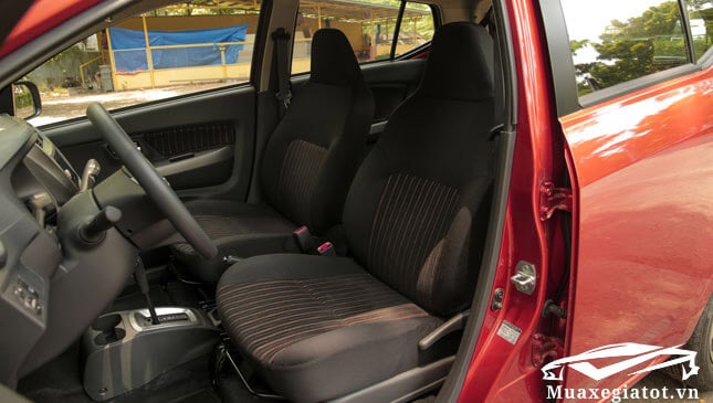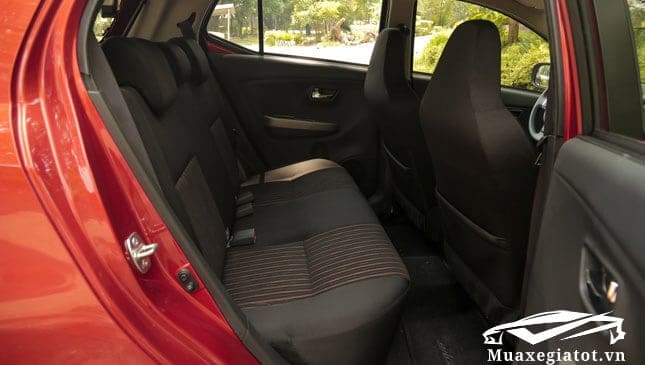 Xe Toyota Wigo chỉ có một tùy chọn ghế ngồi bọc nỉ. Đáng chú ý là tay nắm cửa trong xe được mạ crom sang trọng không kém khoang cabin của các mẫu xe đàn anh. Cửa sổ cũng là loại chỉnh điện hiện đại nên hành khách sẽ thấy thoải mái.